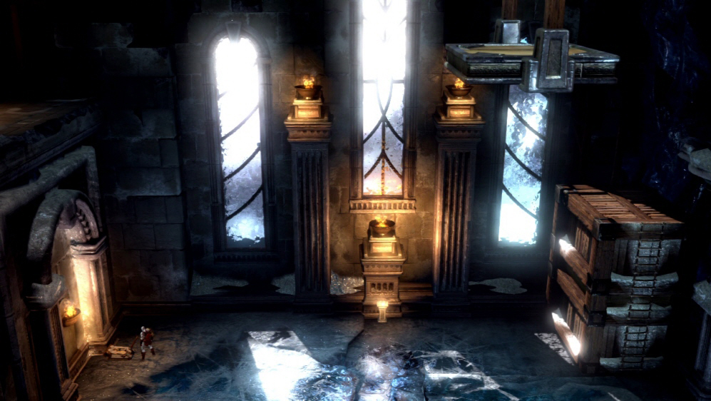 Entonces Kratos la abre, libera su poder haciéndose gigante al igual que Ares. Así empieza una lucha épica en la que luego Ares envía a Kratos a otra dimensión diciéndole que la mejor forma de matar a un hombre es quebrantando su espíritu, (tal y como pasó con Pathos Verdes III) así que lo lleva a un lugar conocido, el mismo templo en el cual mató a su familia y en el que tendría que enfrentarse a copias suyas para detener lo que el había hecho antes.