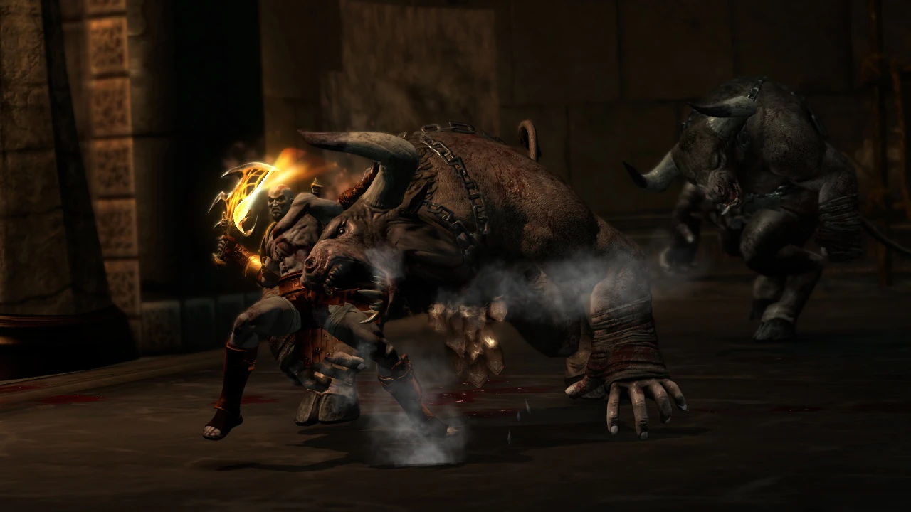 - Irónicamente, en God of War y God of War II Kratos derriba a las bestias cornudas con un fuerte cabezazo.