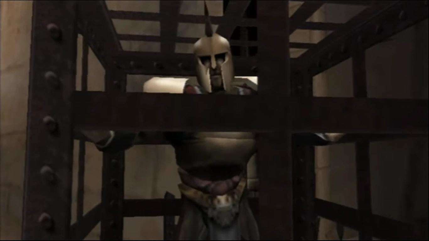Después de que Kratos encuentra el mango de Poseidón, lo utiliza para bajar la jaula del soldado. El soldado le pidió a Kratos que lo libere para poder regresar a Atenas, pero Kratos le dice que debía ser sacrificado para apaciguar a Poseidón. El soldado le dice a Kratos que se detenga, pero sus súplicas cayeron en oídos sordos. Kratos pasó hacia la Cámara de Poseidón luego de haberlo sacrificado.