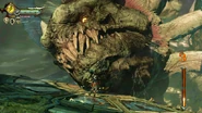 - It was long time believed (and implied by the developers) that the monster that attacked Kratos in the single player demo and the trailers was in fact the mythological beast Charybdis, only to be revealed in the final boss battle to be a monster form of Alecto.