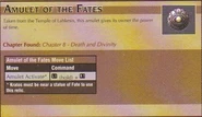 When used, it causes everything around the user to greatly slow down and take on a green hue, while the user continues to move at normal speed. The Amulet, however, could only be activated when it was close enough to a Fates Statue.