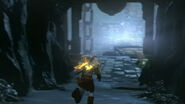 In God of War III, the Caverns of Olympus were located in the center of Mount Olympus, where the inactive Labyrinth could be found, and Pandora was held at the heart of the caverns. When Kratos made it to the end of the Path of Eos, he jumped into the Icarus Vent which lead to the Caverns and the Labyrinth above. In the Caverns, Kratos found a way to activate the Labyrinth in order to get to Pandora. That was also Daedalus' Prison in his own creation that Zeus demanded him to build to in order contain the Key to the Flame of Olympus. The Caverns were the homes of Skorpius and her brood. Another entrance to the Caverns could be found when Kratos crossed the chasm after the Olympus' Garden.
