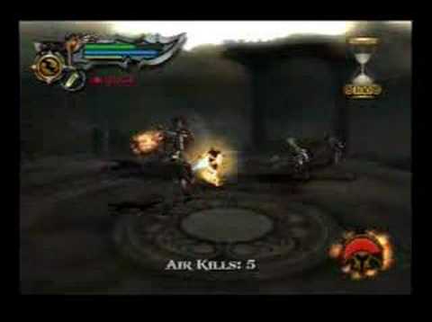 - Death from Above - Kratos must kill at least 10 enemies in midair before time runs out (limit: 200 seconds). Bonus points are received if a total of 15 or more enemies are killed. Tip: Use Typhon's Bane and the Icarus Wings as this will be much easier but do not the let the Gorgon freeze you in mid-air.