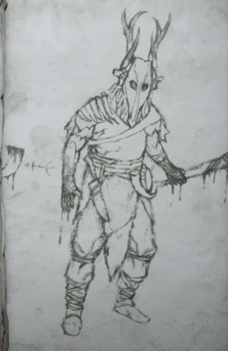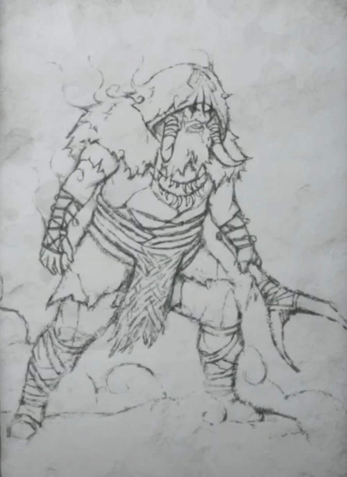 | Draugr | Mother said that Draugr were warriors who died, but their souls were too stubborn and angry to stop fighting. They'd fight off the Valkyrie that came to collect them, and bring their own dead bodies back to life... warping and twisting their previous form into something else. Now they're husks of their former selves, and fight anybody they can find. She also said they can come back in all different shapes and sizes and that some even have powers that others may not.