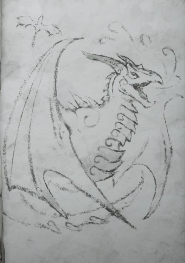 | Hræzlyr | I can't believe it... Father just killed a dragon! I've never seen him fight like that before. I mean, I know he's really strong and all, but this thing was huge! The dragon's name was Hræzlyr, which is sort of like the word for "Terror". It's an appropriate name too—he's vicious, ugly, and shoots lightning out of his mouth. Luckily, Father was able to find some Yggdrasil tree sap crystals, and he used them to stun Hræzlyr. Then he stabbed a big crystal into his throat! There was a big explosion, and down went the dragon. I'm still shaking from the excitement, but Father doesn't even seem fazed. Does he ever get scared? | |