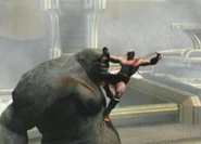The Cyclops Berserker has two different variations in Ascension. A brown colored Cyclops Berserker appears in the Public Demo, wielding a metal club. Once weakened, Kratos can quickly climb on his back and ride the beast. As it grows weak, Kratos finishes the beast by slitting its chest and stomach, exposing its small intestine, before it collapses. (Though, brown Cyclops Berserker do not appear in any place, especially didn't appeared in multiplayer.)