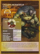 Cyclops Berserkers are the largest species of Cyclops that appear as enemies in God of War II. They wield what appears to be a gigantic tree trunk as a club and are often summoned by Beast Lords, after which can they hoist themselves onto its shoulders, controlling it in battle, and allowing them to do more dangerous attacks.