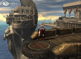 A large bridge sticks out over the gap. It is here where Gaia tells Kratos the story of Cronos and his fear of being overthrown by Zeus. From the bridge, Kratos has two paths he can take. He can go to the right to get a Gorgon Eye, and the path to the left leads further into the Gardens of Lahkesis.