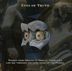 The Eyes of Truth was an item that was obtained by Kratos in God of War: Ascension and held the power to destroy any magic barriers, illusions, and dark spells.