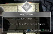 Falcons' Dive is a Runic Summon which Atreus can call upon by holding