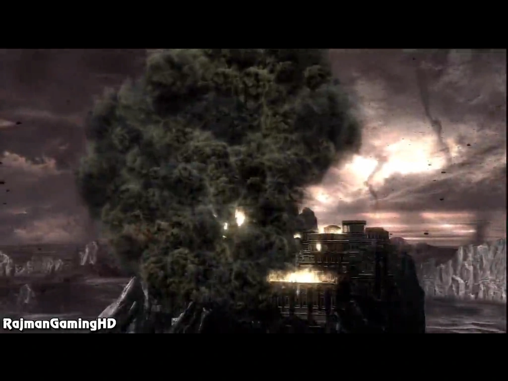 In retribution for her betrayal, Kratos sends Gaia plummeting from Olympus.
