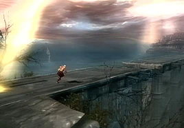 When he reached the chasm, Kratos fought a crazed Icarus and ripped off his wings, allowing the insane man to fall to the Underworld. After falling into the Underworld, Kratos came face to face with the Titan Atlas. After Kratos gained the Titan's trust and was granted the power of Atlas Quake, Atlas aided him by giving him passage across the chasm.