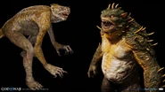 The Grims were occupy the voluminous middle berth in the life cycle of Svartalheim's hostile gas-monsters. The "teenagers" of the species, for lack of a better world—violent, foul smelling creatures. Among the most mobile denizens of the nine realms, the Grim can climb almost any surface, and burrow into the ground at disconcerting speeds—making them all too easy to lose sight of. Fortunately, they haven't developed the ability to fly. They are native in Svartalfheim, but some of them also live their habitat like Niflheim and Asgard.