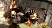 Helios lies by telling Kratos that he would have to bathe in the Flames of Olympus in order to obtain its power. Kratos immediately saw through Helios' deceit however, yelling that Hephaestus had told him that the Flame would kill all who touched it. Helios tried to defend himself by claiming that Hephaestus was lying himself, as the "freak" had fallen from the graces of Olympus, so why would the Ghost of Sparta believe Hephaestus's word over a unfallen deity's like himself; Kratos retorted that it was exactly why he believed the God of Smith, for Hephaestus has nothing to gain or lose by lying to the Spartan, as they had both fell from Olympus' grace and therefore on even grounds.