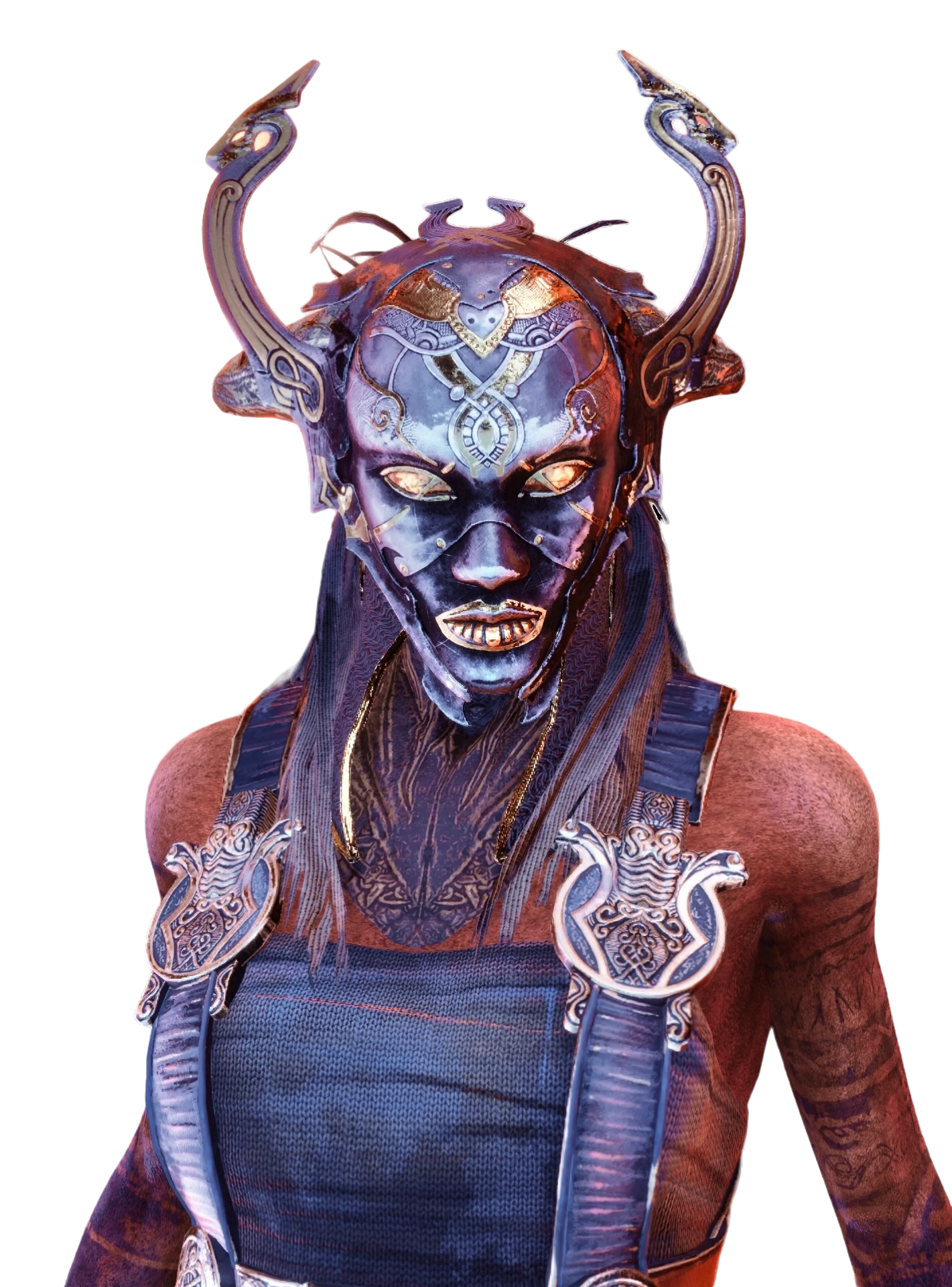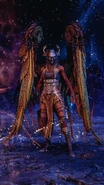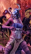 Like all the other Valkyries, Hrist is a very tall and slim woman whose most obvious characteristic remains her majestic Valkyrie wings, fashioned of a bronze metal. These wings are as sharp as razors and as sturdy as steel. While the primary goal of such attributes is indeed to allow Mist to fly as fast as possible, she does not hesitate to use them as weapons if necessary. Her face remains hidden and protected behind a masked helmet with upward-curving horns, likely designed with one purpose: to personify death. While it is true that all Valkyries wear a unique and intimidating helmet, Hrist's particularly demonic mask is likely a testament to the darkness and evil that the Valkyries have succumbed to after serving the All-Father for centuries.
