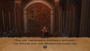It should be noted that before entering Clotho's chambers, Kratos sees three murals describing past, present, and future events. The first referencing the Great War between the Titans and Olympians in the past and the threat of its revival, the second showing a lone man (likely Kratos himself) surveying the carnage of a great battle that is waging on below him, and the last alluding to the journey of the three Wise Men toward the birth of Christ. It is possible that the last mural referencing Jesus Christ's birth and the rise of Christianity is there as a way of conveying the real life turn from polytheism, the worship of multiple Gods, such as those in Greek Mythology, to the worship of one God and creator, namely Monotheism. Beyond the key players in the Greek Mythological world being dead the rise of Monotheism such as Christianity (which is notably the world's dominant religion) only further drove figures such as Zeus into things of legend and myths. There has also been some debate as if this Monotheistic reference is a clear cut statement from the developers that in their perception of Greek Mythology the God whom Jews, Christians, and Muslims worship can exist right alongside figures such as Zeus and not be contradicted as being exactly what their religions claim about Him.