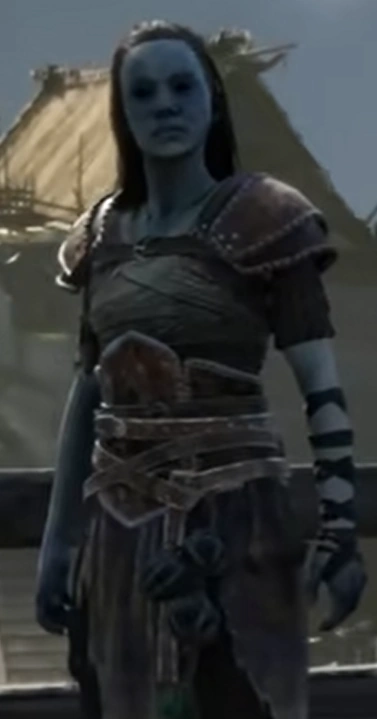 Her appearance is like an average female Einherhar, pale-skinned women with long hair on their shoulders, they wear iron breastplates and leather pants, Before being blessed by Odin, Janna had no marks and her eyes were black and empty.