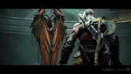 Her melee attack consist of only four-times wing slash, which unlike her sisters, track Kratos poorly and a Scythe attack where she takes to the air before lunging at Kratos; an attack that can be easily countered with the Guardian Shield.