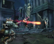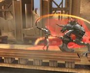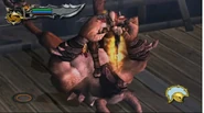 Their fighting style is equal to that of the regular Minotaur Grunt. But if Kratos use the Orion's Harpoon move, he will not slam the Minotaur in the ground. Instead, he will sent the Minotaur flying after pulling him in. Kratos executes him, in a similar way to the execution move in God of War, only using two blades this time. Killing a minotaur this way, will count as a Ruthless Kill giving the player 25 red orbs in combination with green orbs.