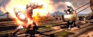 Grappling hooks are donned by each warrior and can be used to drag retreating opponents back into a fight, in the special attacks of some weapons and even in some brutal kills. Although they usually don't count as weapons, it is important to mention this item in the Weapons list. In Rage Mode, they are used to attack players with strong and unblockable blows, throwing them in the air or knocking them away.