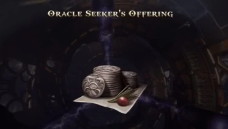 The Oracle Seeker's Offering is one of the artifacts in God of War: Ascension. It is located in Ice Caverns. It is first seen being carried by a man hoping to see the Oracle of Delphi, but he is attacked by the Manticore and presumably killed, losing the tribute.