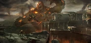 Perses shortly appears at the end of God of War II, after Kratos had rewound his own Thread of Fate to beyond his birth, to visit the first Titanomachy. Meeting Gaia, who was already expecting him, Kratos convinces her and the other Titans to journey back with him to his own time, where Zeus, weakened and wounded after battling Kratos, had fled back to Mount Olympus. Perses, along with his other comrades in battle, is then seen climbing Mount Olympus, starting the Second Titanomachy. If you look closely to the left, you can see Perses climbing beside and behind Gaia.