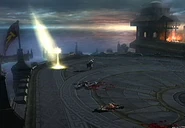 As the fight continues, the defenders of Rhodes have become more spirited, pushing the Spartan invasion army back to the shores and regaining lost ground. The soldiers of the city fight with renewed momentum, beseeching Zeus for favour. The groups of soldiers that Kratos comes across hope that they will totally defeat the invasion by killing the Ghost of Sparta, as they sense that he has lost his full status as a God. Two particular soldiers even baited the White Warrior by shouting that the Colossus is about to strike, almost taking Kratos' head off as he looked behind.