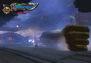 Kratos landed in Rhodes, as large as Ares before him during the Siege of Athens. The God of War starts to crush his first victims and plans to destroy the famous symbol of the city, the Colossus of Rhodes after the final triumph. Constant Spartan reinforcements keep landing on the shores and harbours of Rhodes, joining the invasion. Just as Kratos begins to take part in the carnage, a large eagle appears and deprives him of the majority of his divinity and power, infusing it into the Colossus. Kratos feels utterly humiliated, as he shrinks infront of his Spartans, promising that Athena will pay for this. Initially, Kratos is not troubled by his loss of size and power, looking forward to fight side by side with his comrades and set a good example.