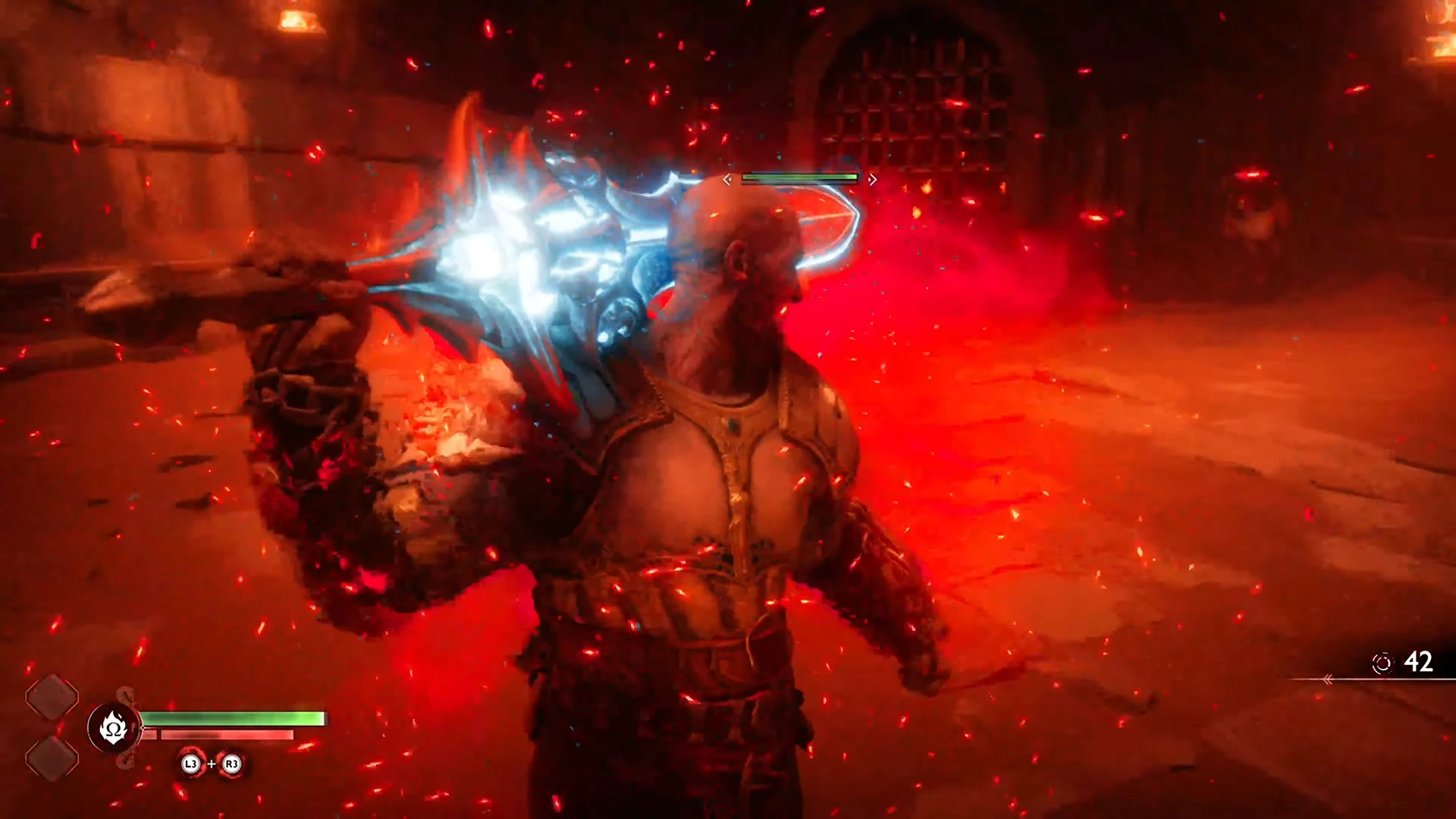 Spartan Rage is filled up by dealing and taking damage, most notably while performing R3 finishers when enemies are stunned. It is activated by pressing the L3 and R3 buttons simultaneously, allowing Kratos or Atreus to enter an empowered state.