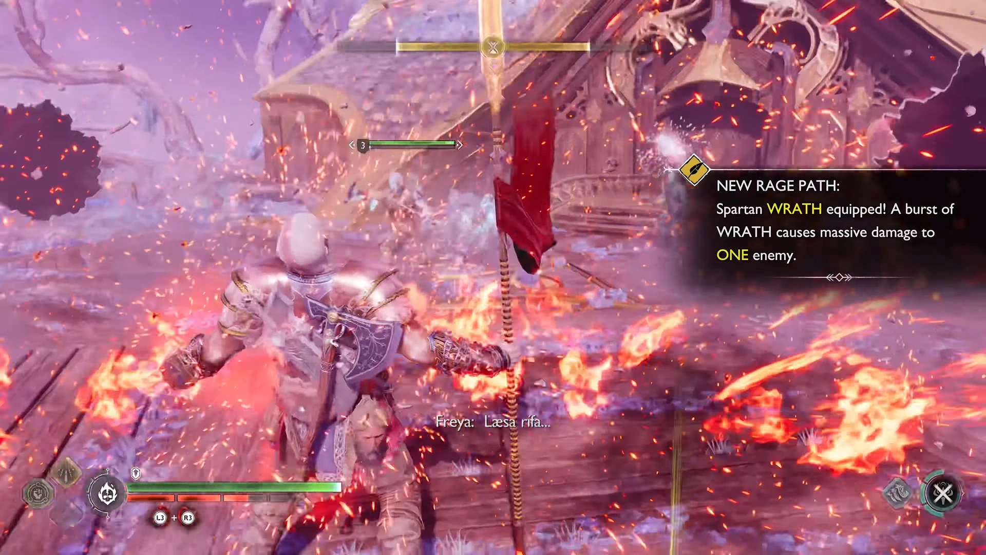 Wrath becomes available when Sindri's House falls under attack by Hel-Walkers coming through the rifts opened by Garm. When using Wrath, Kratos spends some Rage to use weapons he currently wields and charge forward and unleash a powerful attack. Failure to make contact with an enemy will refund half a chunk of Spartan Rage.
