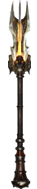 The Spear of Ares is a weapon designed for medium and short range combat. The Grappling Hooks used by all warriors are attached to the rod in its special attacks for the spear to be tossed in front of the user, which focus on a single foe, or around him, which hits every nearby foe, and then pulled back when the attack is over. The result of this are medium ranged combos in which the spear spins at enemies multiple times, dealing repeated damage before delivering a final blow that knocks them away. Assault your enemies by fiercely slicing them with this quick and deadly weapon.