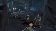 The Catacombs are a series of long cavernous tunnels beyond the Temple of Euryale. Kratos makes his way through the catacombs, fighting off Harpies, Cursed Remains, and a Titan Minotaur, until finally returning to Destiny's Atrium with the Golden Fleece, which allowed him to continue to the Courtyard of Atropos.