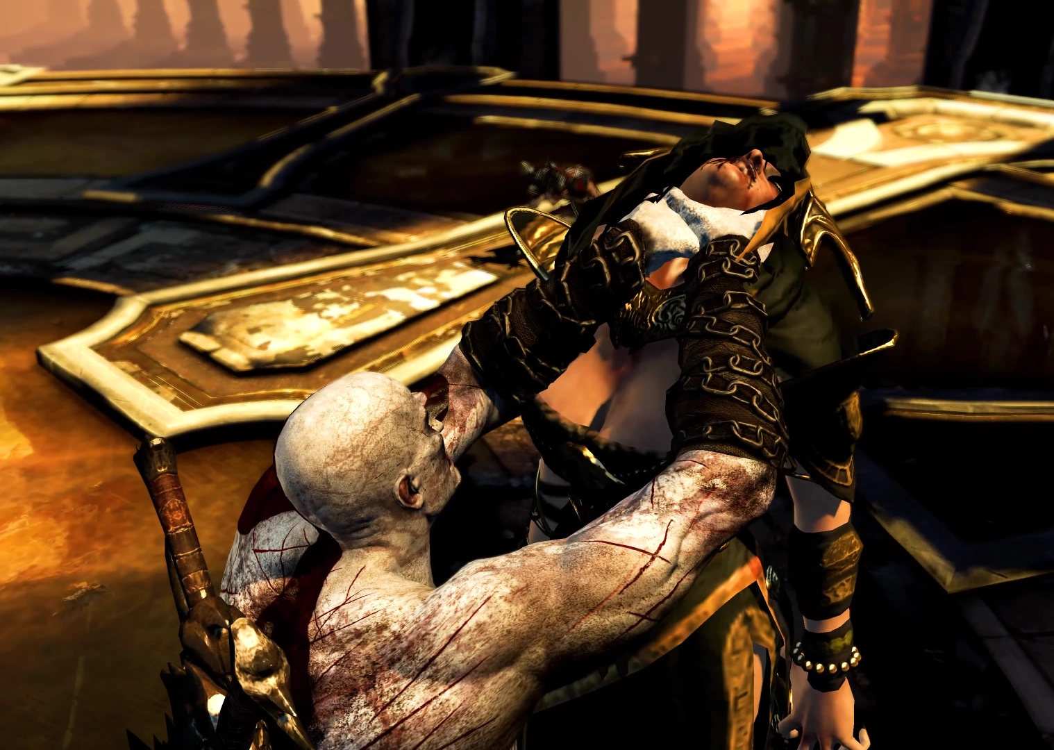 - Megaera states that her sisters are kinder to Kratos than she is, it's possible she states this because both Alecto and Tisiphone imply they have a sexual attraction towards Kratos. This is because both of them create illusions so that they appear as Kratos's wife so he will sleep with them; Alecto even begs that Kratos stays as a servant to Ares so he can have such illusions forever.