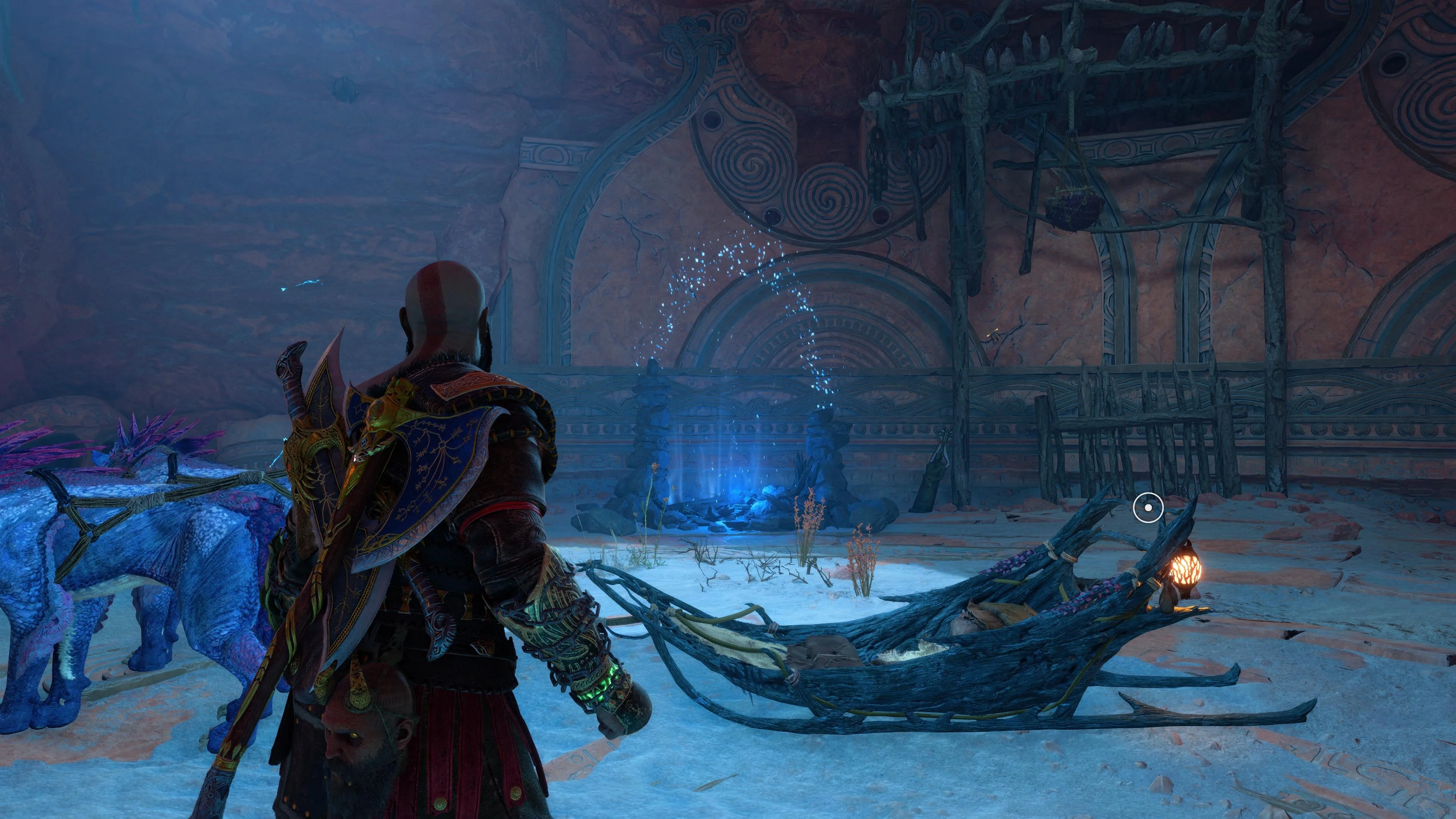 The Hjarta is an adjoining passage between The Barrens and The Forbidden Sands. Sealed behind a rune slate, Kratos and company obtain access to it, after Freya teaches him how to unlock them. After unlocking it, the group pass through The Hjarta, to explore the rest of Alfheim's desert.