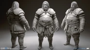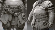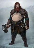 - During his cameo appearance in the secret ending of God of War (2018), Thor features a design very different than the one used in God of War Ragnarök. This design features a less detailed beard and more elaborate outfit that covers his still-visibly barrel-chested physique. As Thor's screentime in God of War is very limited, this design was used as a placeholder, only being used for the statue destroyed by Jörmungandr and the teaser featured at the end of the game.