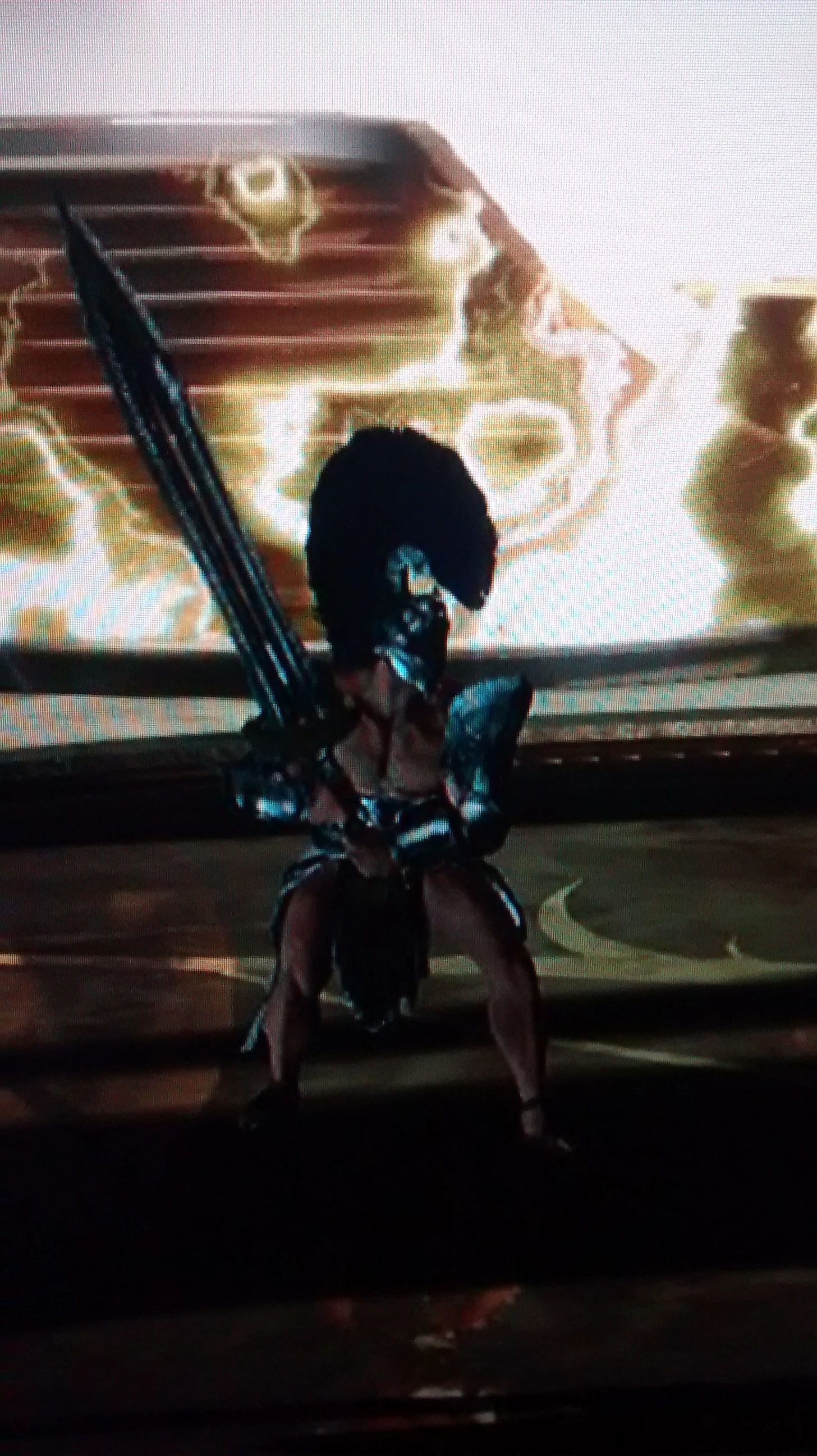 - When fighting him, magic barriers will appear in front of the gods' statues, preventing the player from reaching them. These barriers will be orange if the player's warrior is aligned to Ares, purple if he's aligned to Hades, yellow if he's aligned to Zeus or blue if he's aligned to Poseidon.