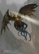 Geirdriful, Master of Arms is located in a Hidden Chamber of Odin at The Foothills in Midgard. She prefers to keep her distance and attack with projectiles, but can also perform a blinding AOE attack by slamming her wings together.