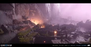 Vigridr takes on the appearance of a stereotypical battlefield. There are military outposts, small wooden forts, and trenches that had been dug into the earth . There are also masses of barricades made of sharp logs. Parts of Vigridr are also armed with war machines imbued with Bifröst energy.