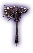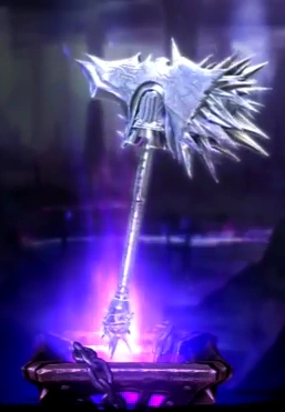 It is a war hammer hammer with spikes and purple groves on it. Specially known for its leeching powers, it becomes useful at danger situations such as being low in health or surrounded by multiple enemies. Those who like to attack packs of enemies at once and, at the same time, keep their health bar at higher levels will find this hammer a very desirable weapon.