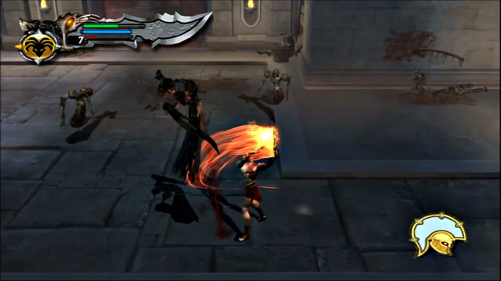 If a golden halo appears above their heads, Kratos can grab them with his Blades and slam them on the ground three times, gaining magic orbs at each slam. This is also the brutal way to finish these Wraiths' spirits. To kill a Wraith of Hades, Kratos takes one of their curved blades, pushes them to the floor and impales their chest with it, just like he does to the Wraiths of Olympus. Both red and blue orbs are gained for brutally executing these foes.