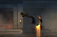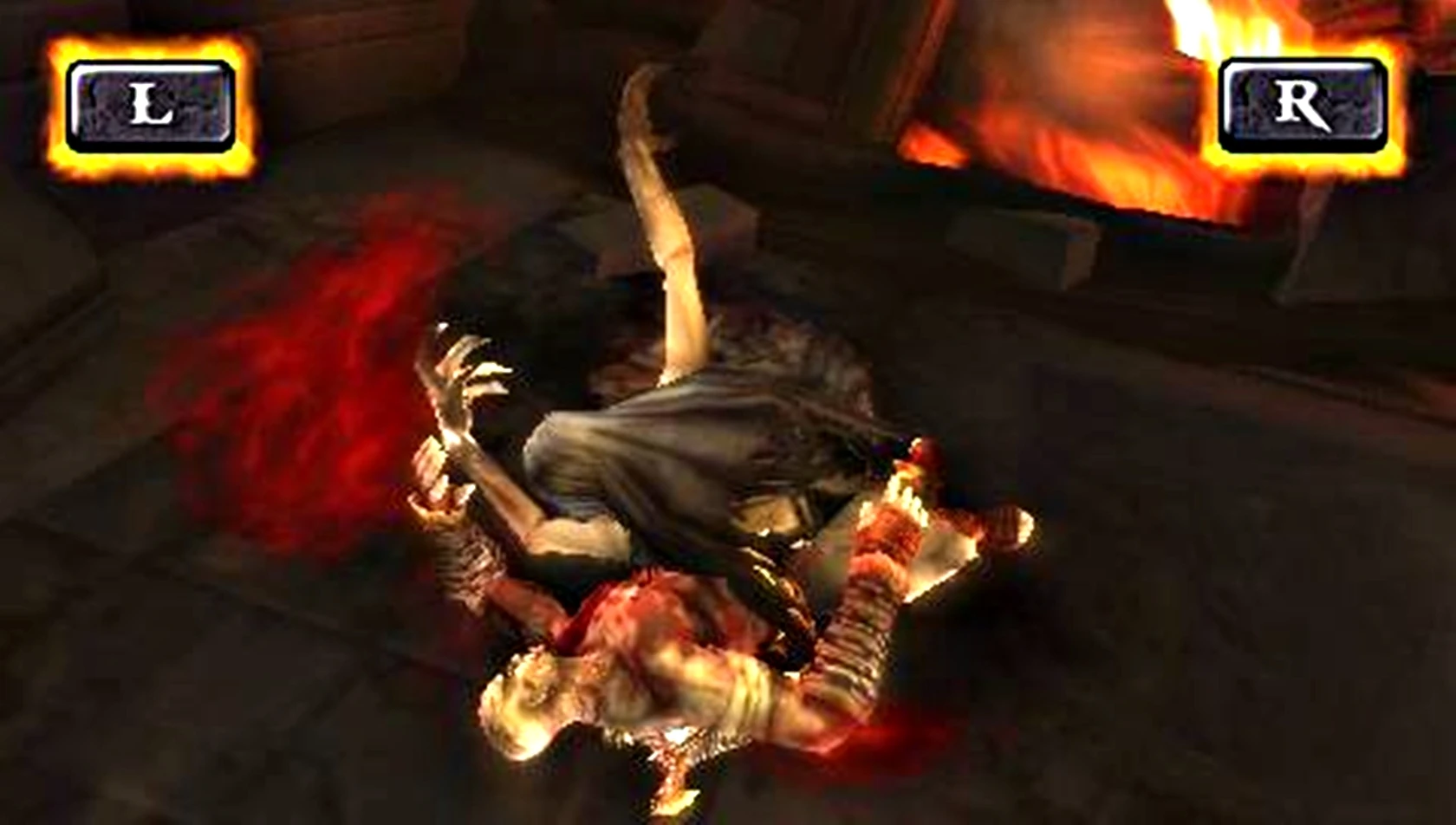 If the Combat Grapple is continued, a unique Wraith-finisher is performed. After several attacks and throws, Kratos launches them in the air, jumps up alongside them, grabs them mid-air, and performs a brutal backbreaker.